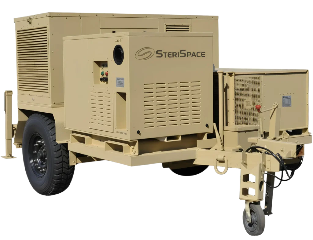 Recognizing the critical need to protect first responders and military personnel from biological threats, including biowarfare agents and naturally occurring airborne contaminants, the GETTS system outfitted with the SteriSpace® Air Sterilization System adds advanced pathogen abatement capabilities, transforming the trailer into a mobile bio secure environment.