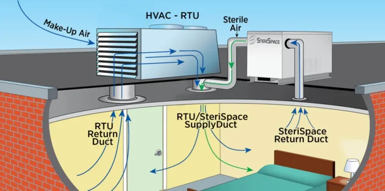 SteriSpace® systems are engineered for flexible deployment and can be incorporated into new construction projects or retrofitted into existing HVAC infrastructures. The addition of SteriSpace to an existing HVAC system can be used to attain compliance to ASHRAE 241 clean air requirements. This allows the existing system to remain along with the addition of SteriSpace to thoroughly rid the space of biological contaminants.